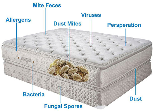 We spend nearly 1/3 of our life in bed; unfortunately the warm humid environment combined with dead skin, oils, and bodily fluids create a breeding ground for dust mites and bacteria, making our mattresses one of the most unhygienic places in the house! Each mattress can contain nearly two million live dust mites and their excrement!